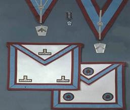 A Mark Master mason wears an apron similar to that of a Master Mason in the Craft except that the Mark Apron is bordered with light blue with crimson edges.